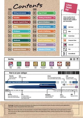 Writing InstrumentsExecutiveAwards, Crystal & Glass 321GiftingDrinkwareDesk & OfficeNotebooksTechnologyConference & EventsBags & TravelClothing & HeadwearSports & OutdoorsLifestyle & PracticalHealth & WellbeingPlants & SeedsFood & ConfectioneryPromotionalCalendars & DiariesHow to use your catalogueIcon KeyColours are guides only and should not be taken as exact matches for colours available of your chosen product.Solid ColourClearChrome/MetallicColour SplitItemName of the productCodePlease quote this whenenquiring or orderingPricePrice shown includes aone colour/one position printunless otherwise statedQuantityIf your chosen quantity is not shown, please ask your distributorColoursThese are for example only and shouldnot be used for definite colour matchingPhoto No.Indicates which photorelates to the itemMPAMaximum Print AreaDescriptionA brief description of the products key featuresIconsAt-a-glanceproducts benefitsWhiteFrosted ColourBrand Logos: The products bearing names and trademarks in the catalogue do not necessarily imply that the owner of the name or trademark has been supplied with the shown product. They are only representative of what could be achieved.Prices: Unless stated all prices include a one colour personalisation in one position. Artwork and origination are extra. Delivery charges may also apply and prices are exclusive of VAT at the current rate. While every e%u0082ort will be made to hold the prices shown in the catalogue during its lifetime, we would recommend you contact us for a firm quote on your required product.E150502senator%u00ae Super Hit Polished push ball pen. Glossy opaque barrel and clip surface. senator%u00ae magic flow X20 refill (1.0 mm), ink colour: black. MPA: 50 x 20mm2. senator%u00ae Super Hit Polished Push Ball PenPRICE: 500 - %u00a30.55 / 1000 - %u00a30.45 / 5000 - %u00a30.39 PAGE65498712111015141318171630264523634766858 PAGE1049280118116110144126122ContentsMade in the UKRecycledor RecyclableAntibacterial SpeedyServiceVegan or Plant Based& SustainableReachCompliantAwardWinningRealLeatherFT Transparent ColourColourSwatchKey